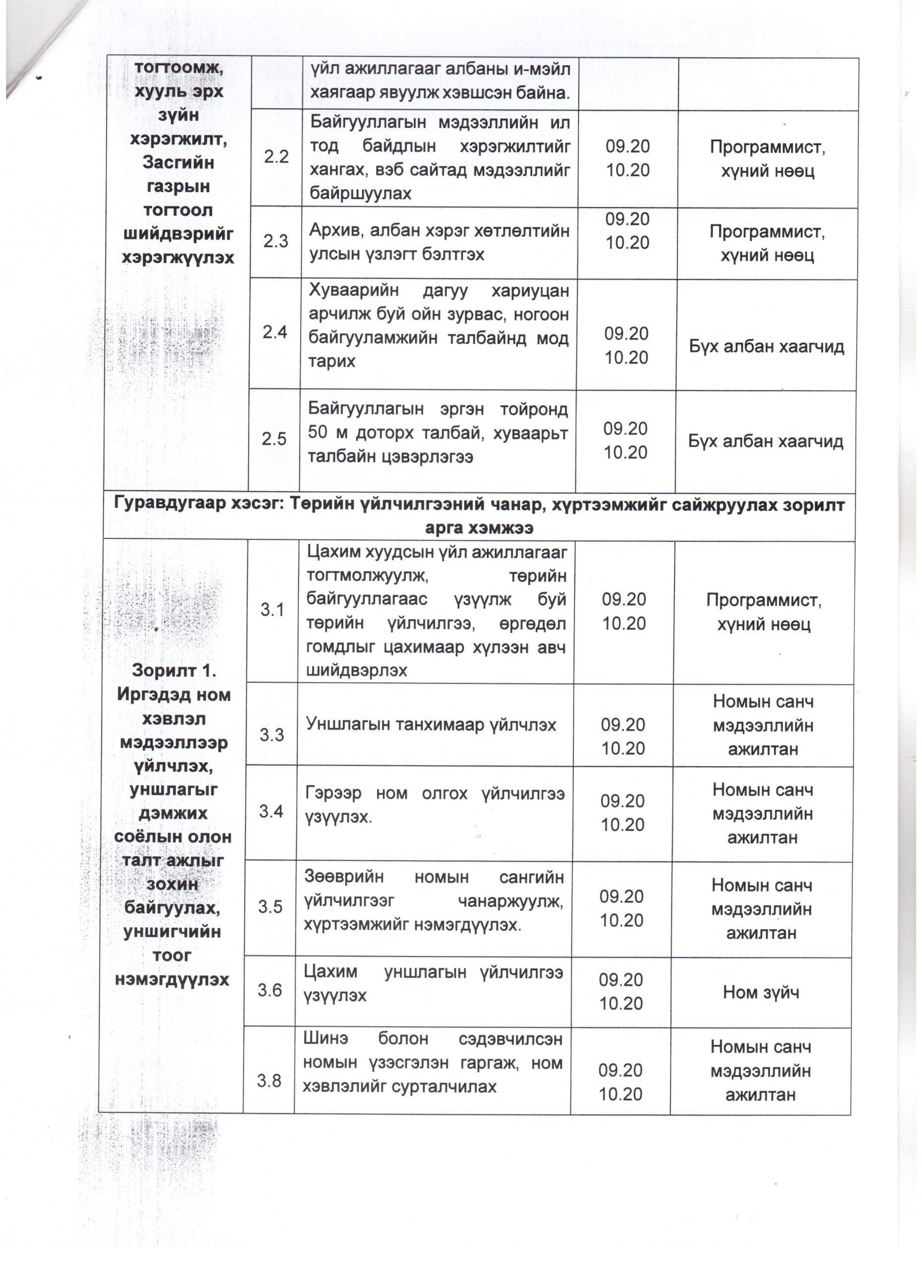 Албан хаагчийн сургалт, ажиллах нөхцөл, нийгмийн баталгааг хангах хөтөлбөр