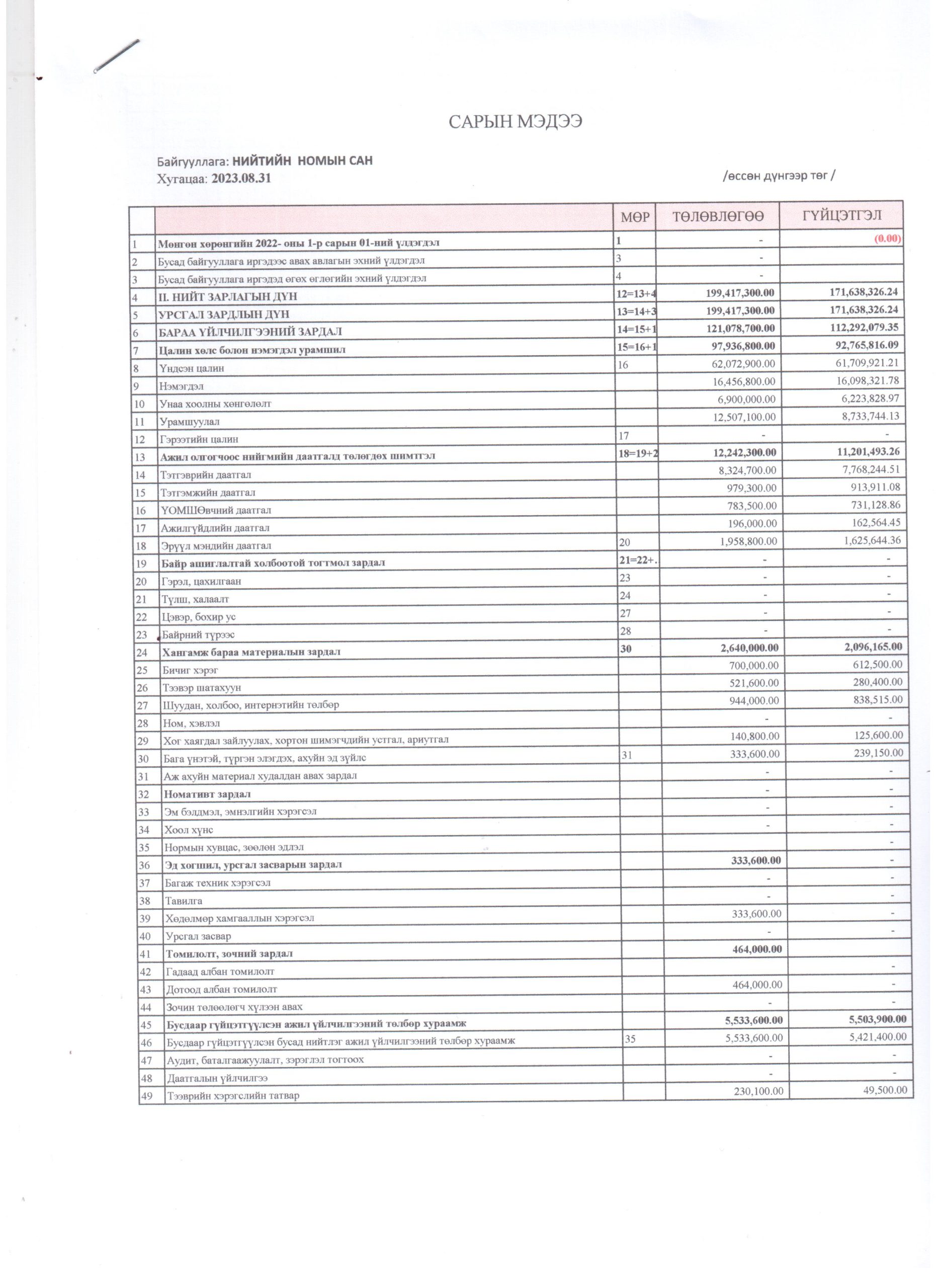 ТӨСВИЙН 2025 ОНЫ 01 САРЫН ГҮЙЦЭТГЭЛИЙН МЭДЭЭ