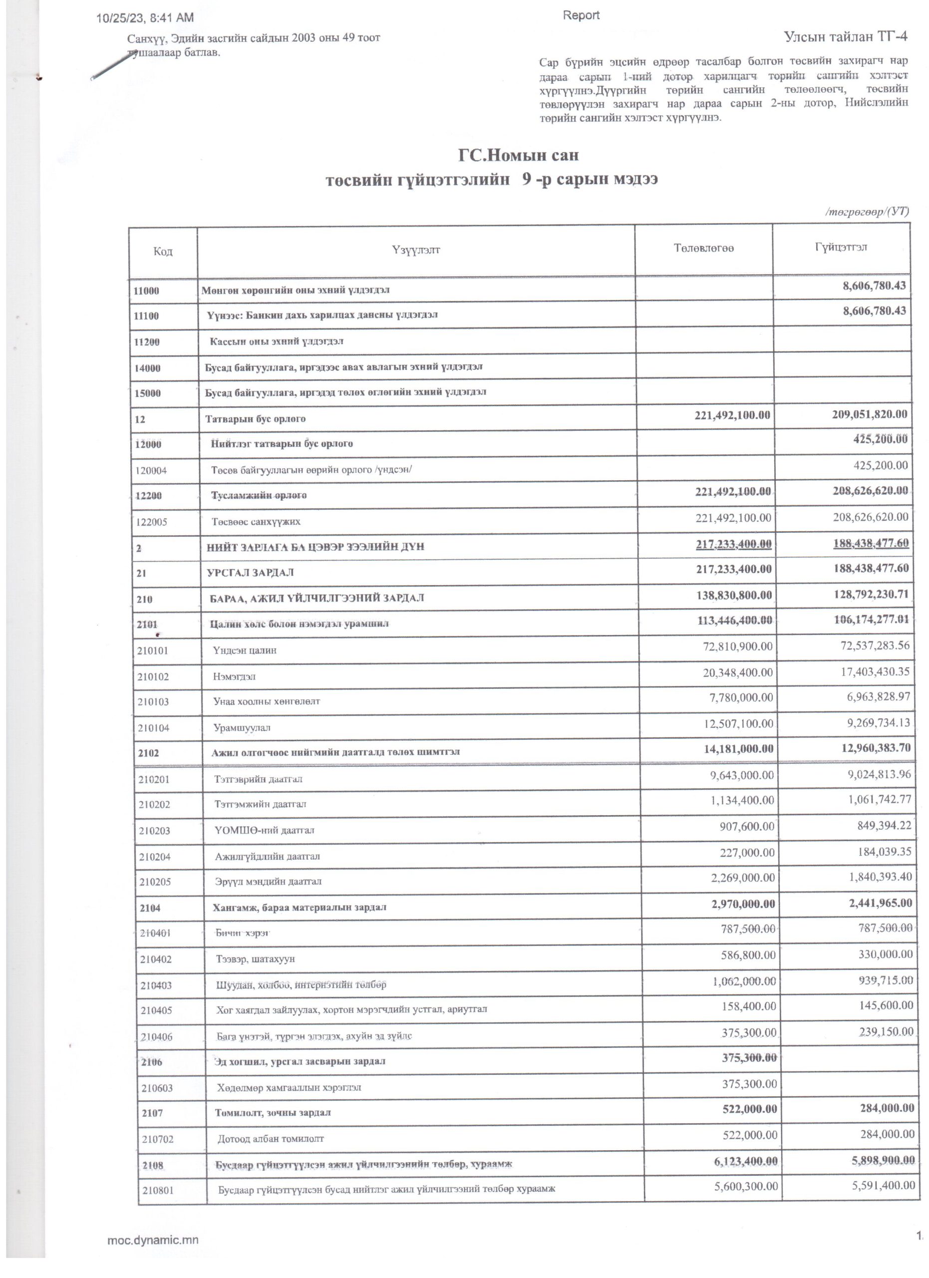 ТӨСВИЙН 2025 ОНЫ 01 САРЫН ГҮЙЦЭТГЭЛИЙН МЭДЭЭ