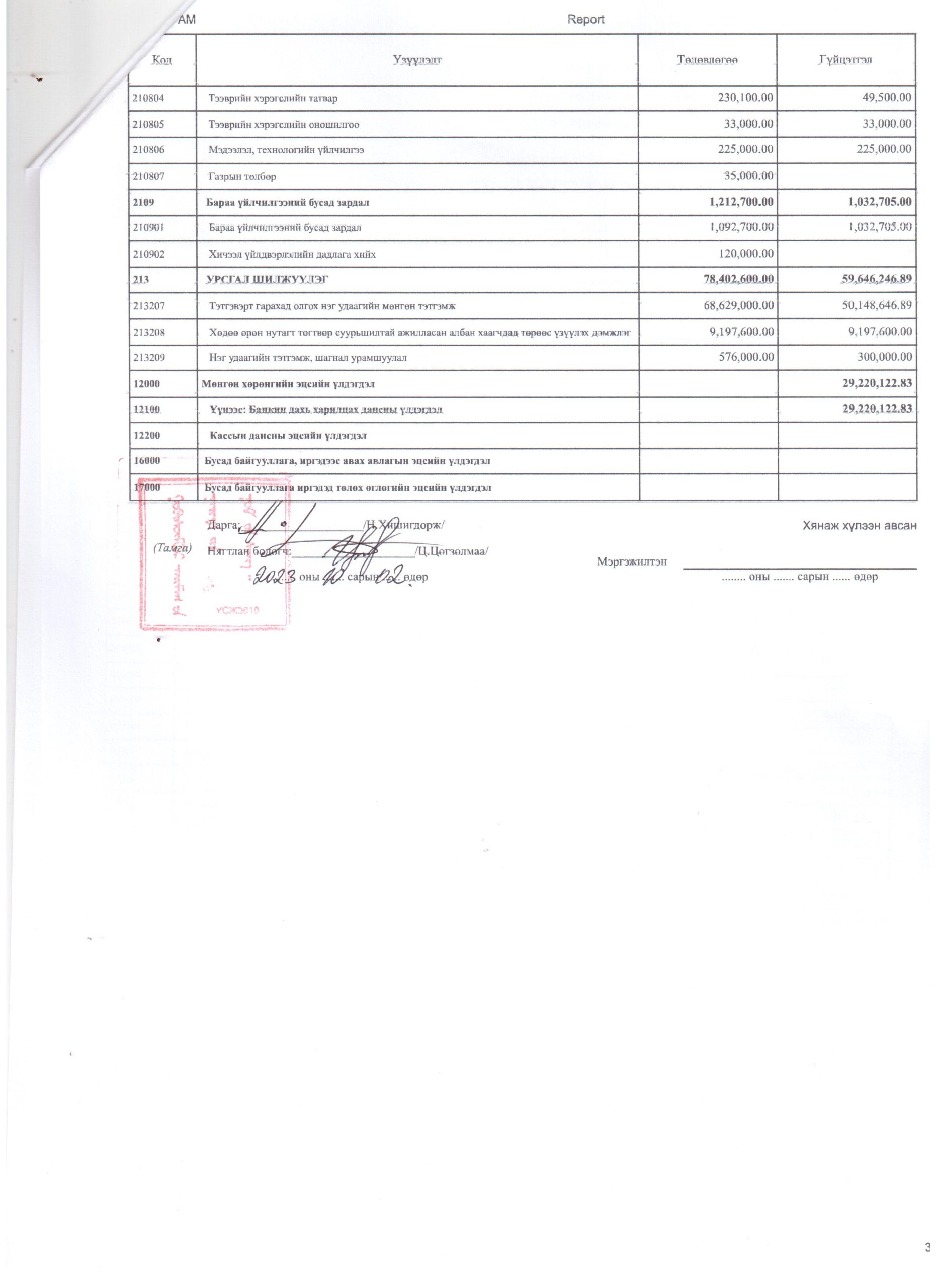 ТӨСВИЙН 2025 ОНЫ 02 САРЫН ГҮЙЦЭТГЭЛИЙН МЭДЭЭ